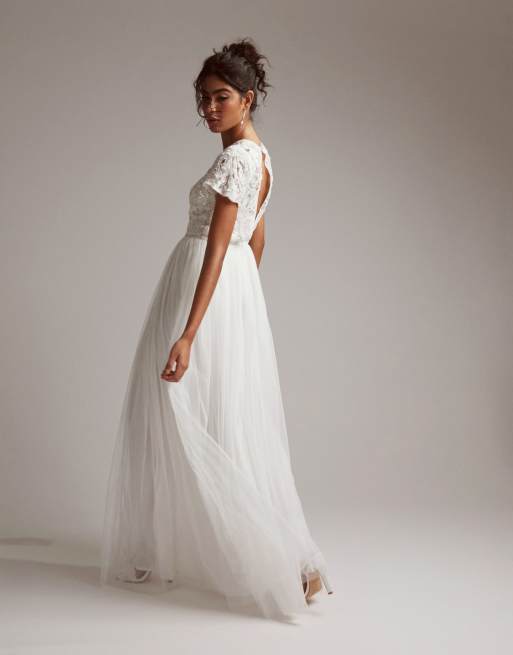 ASOS DESIGN Isabelle Maxi trouwjurk met lovertjes opengewerkt lijfje en kapmouwtjes Very well made.