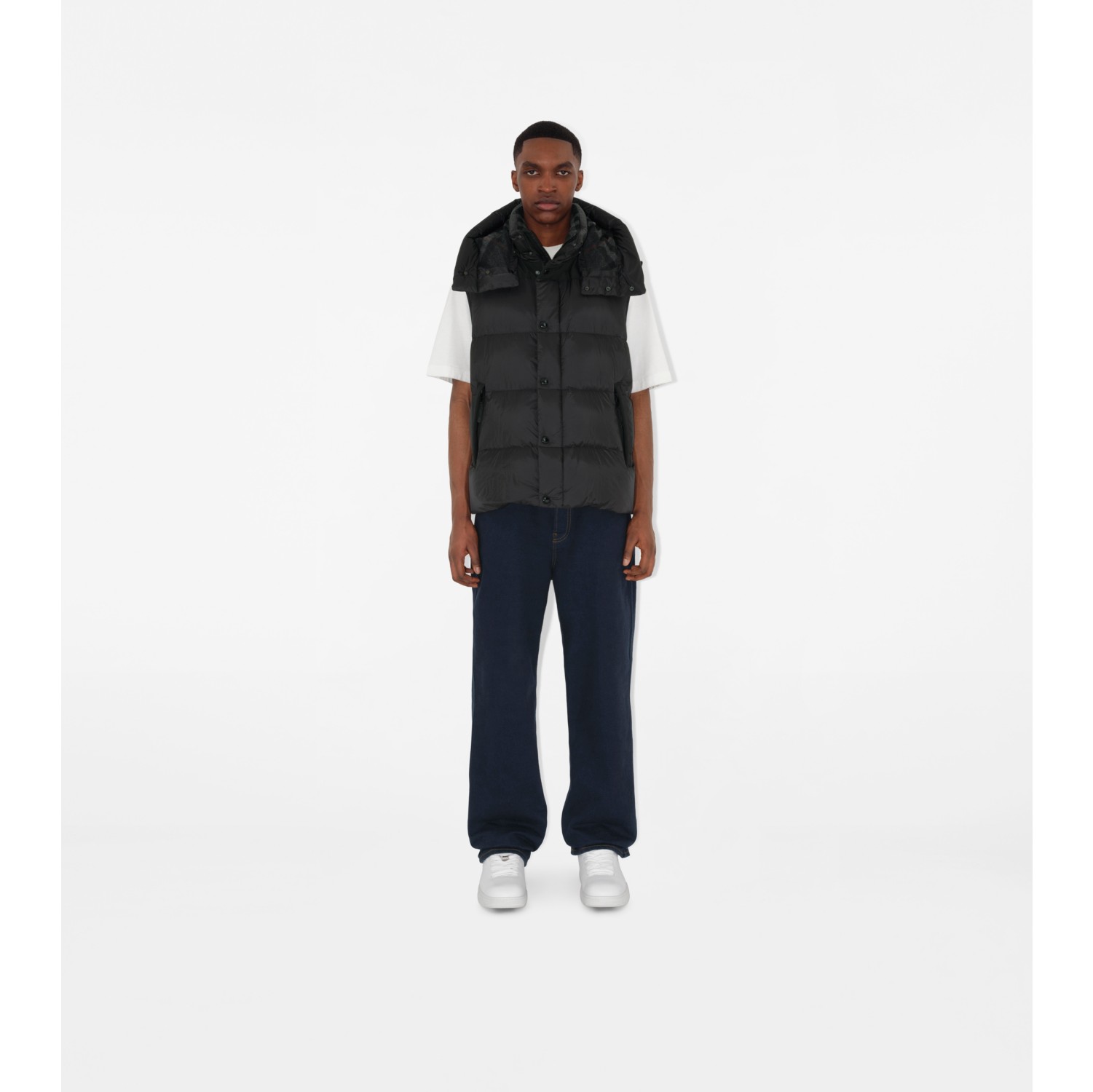 Doudoune en nylon a manches amovibles Noir Homme Site officiel Burberry Very well made.