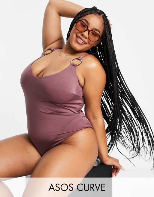 ASOS DESIGN Curve Maillot 1 piece avec anneaux Mauve ASOS Very well made.