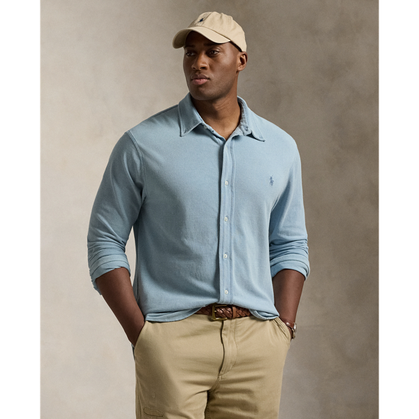 Indigo geverfd mesh gebreid overhemd Very well made.
