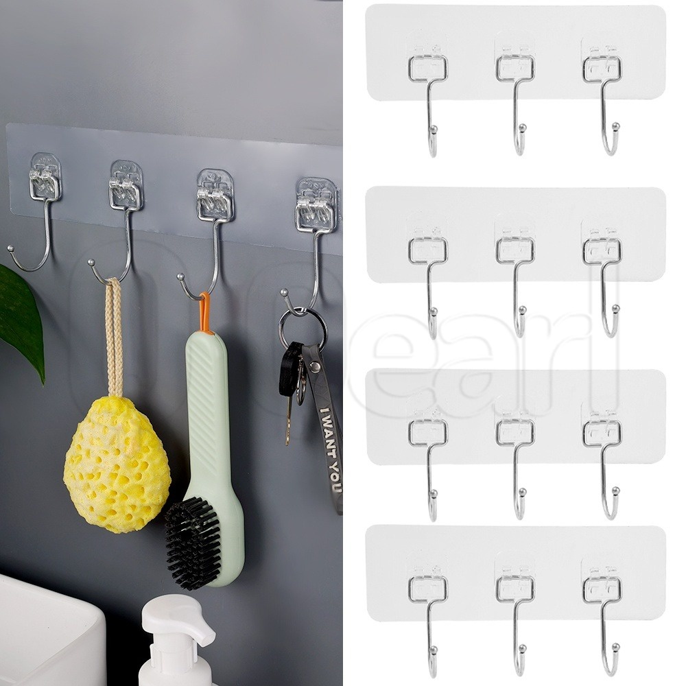 Transparent Traceless Row Hook PVC Waterproof Hook For Kitchen Bathroom Organizer Self Adhesive Hanging Storage Hooks Stainless Steel Strong Very well made.