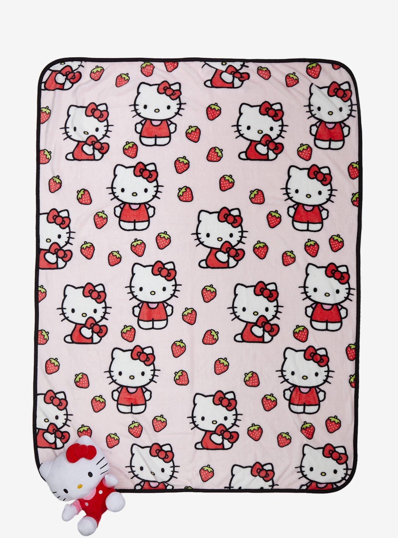 Hello Kitty Strawberry Plush Throw Blanket Set Hot Topic Very well made.