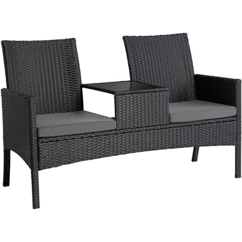 Teal Island Designs Pete Black Metal And Rattan Double Chair With Center Table Target Very well made.