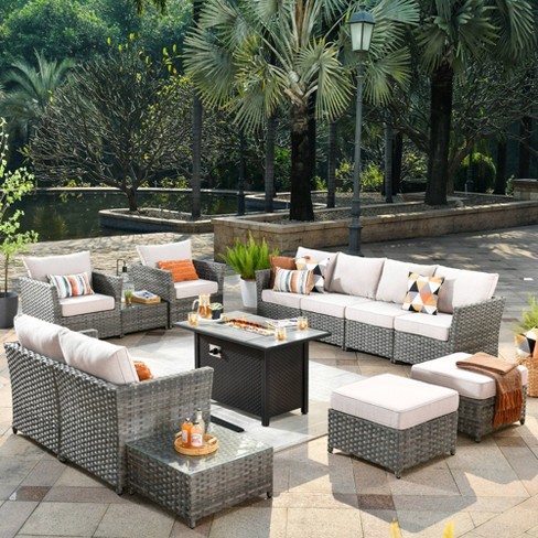Ovios Tenaya 10pc Wicker Outdoor Patio Furniture Set Conversation Sofa With A Storage Fire Pit And Black Cushions Target Very well made.