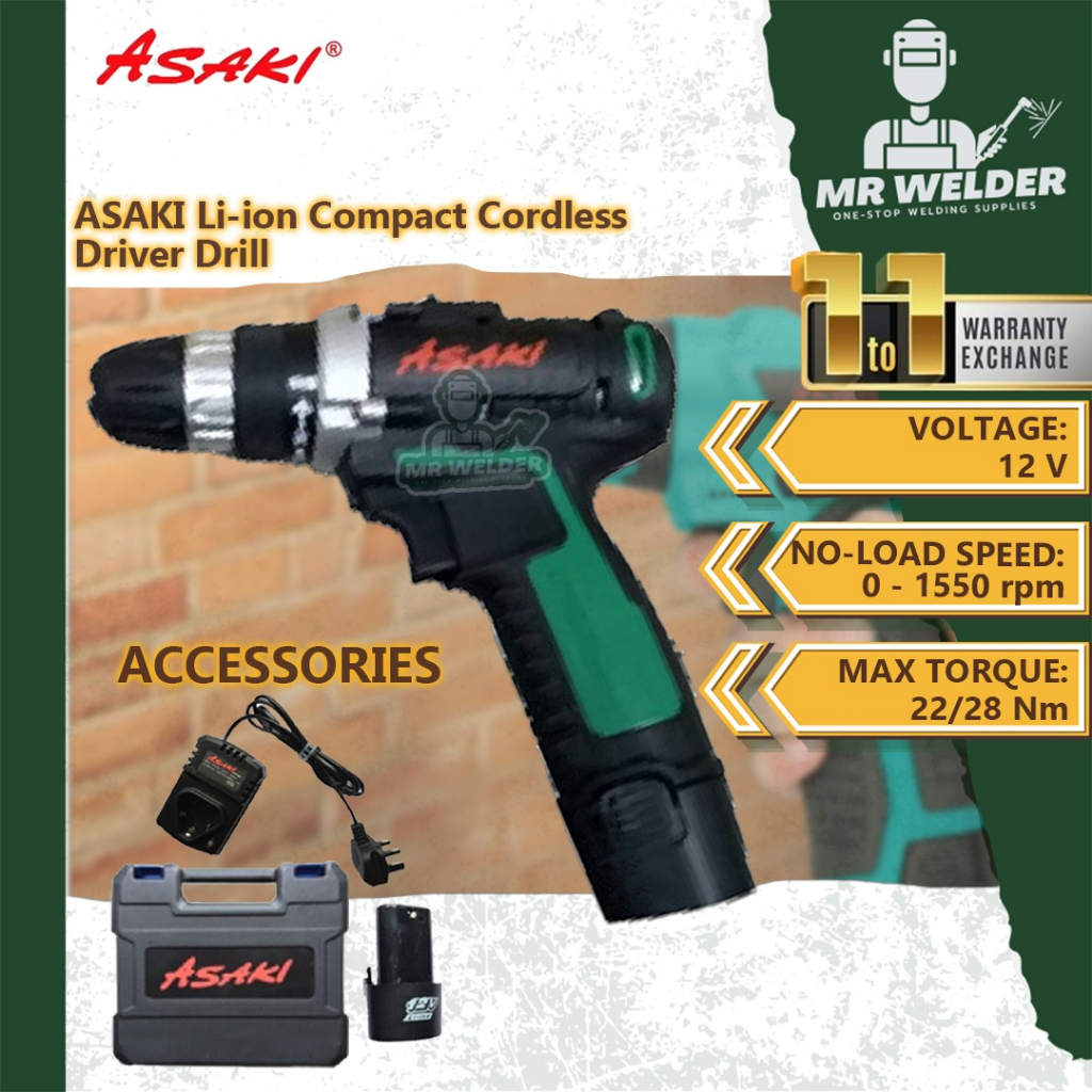 ASAKI 12V 2.0Ah Lithium 2 Speed Compact Cordless Driver Drill 12V Lithium Battery Rechargeable Hand Dril Cordless Dril Shopee Singapore Very well made.