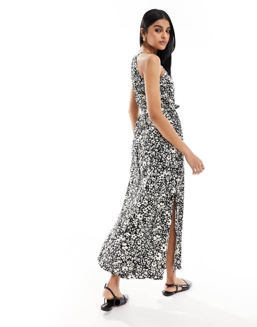 Vero Moda Robe longue encolure americaine en jersey a fleurs avec liens noues a la taille Noir et blanc Very well made.