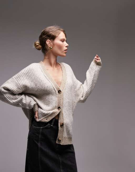 ASOS EDITION Gilet cache c ur long en maille epaisse Taupe Very well made.