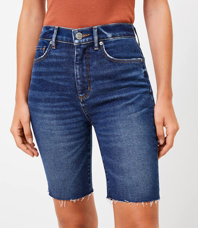 Petite Fresh Cut Denim Bike Shorts in Dark Wash Very well made.