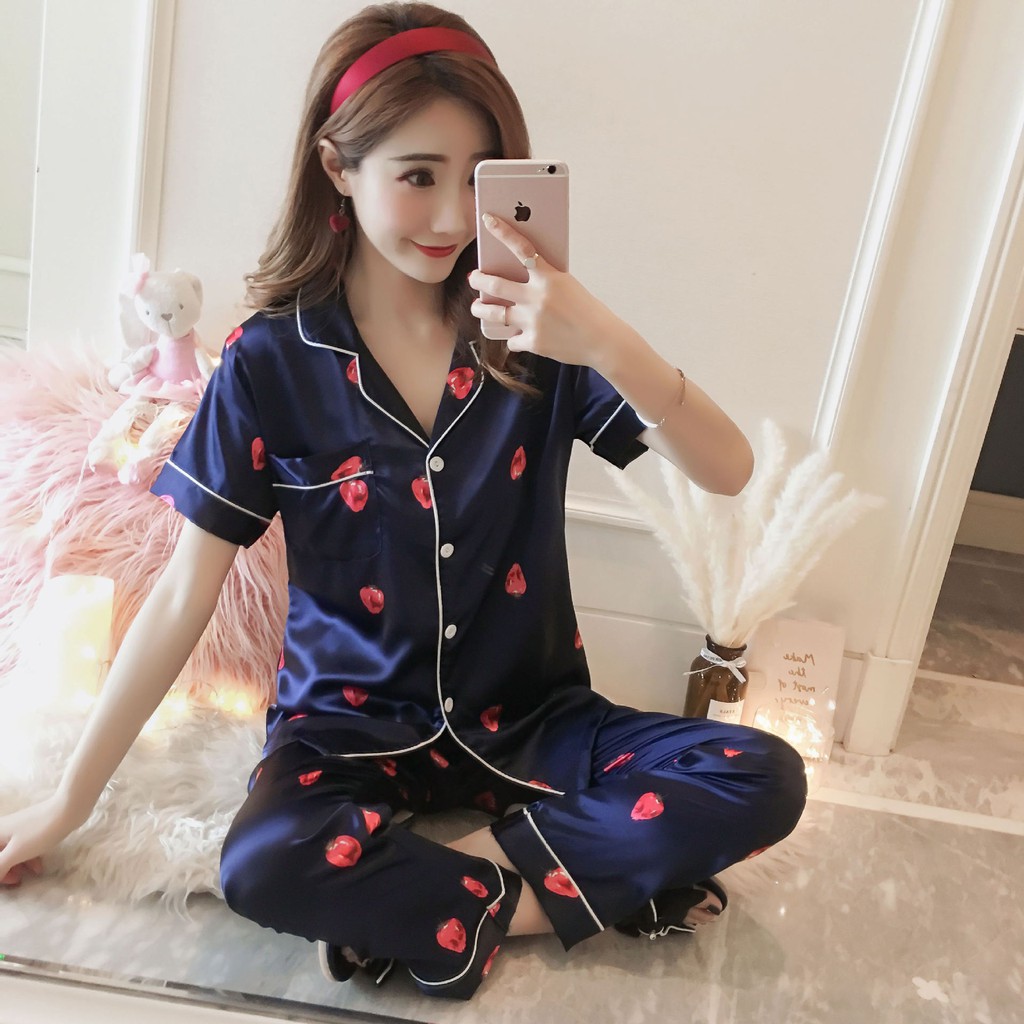 Fashion Women Silk Satin Pyjamas Set Sleepwear Female M 2XL Short Sleeve Pajamas Sleep Suit Nightwear Baju Tidur Shopee Singapore Very well made.