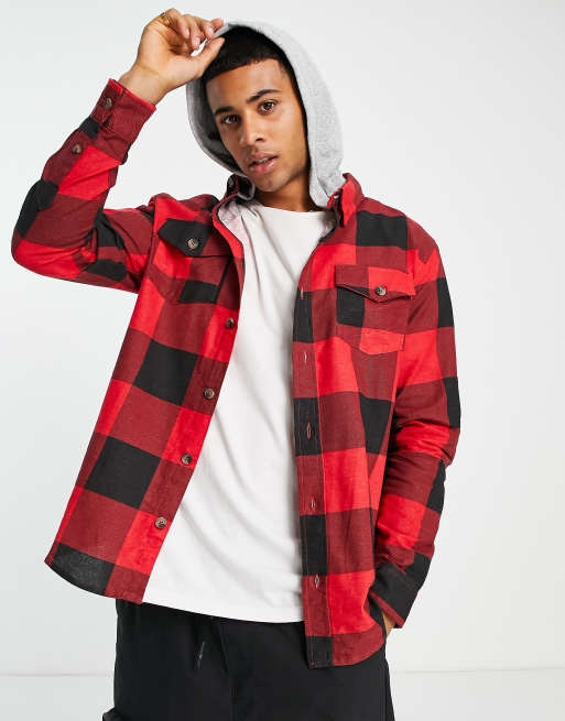 Brave Soul hooded check shirt in red black Very well made.