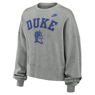 Women s Nike Heather Gray Duke Blue Devils Legacy Fleece Classic Arch Oversized Cropped Tackle Twill Sweatshirt Very well made.