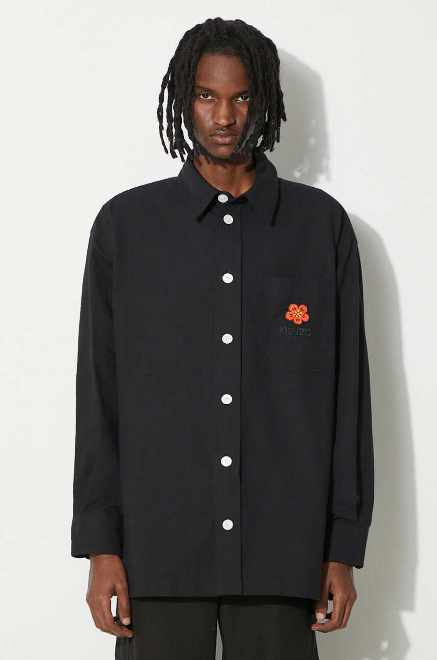 Kenzo cotton shirt Boke Crest Oversized Shirt men s black color FD65CH5079LA.99 at PRM US Very well made.