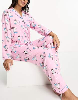 Loungeable his and hers polar christmas bear long button through pyjamas in pink ASOS Very well made.