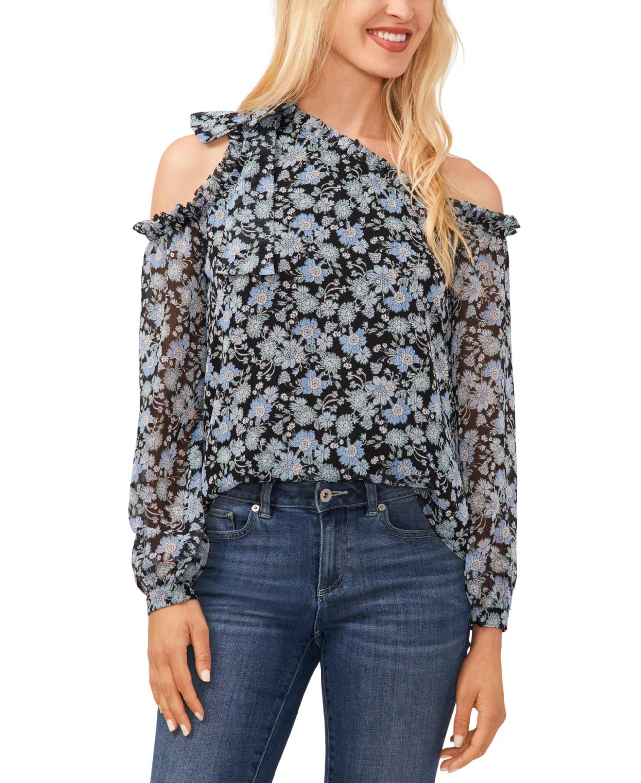 CeCe One Shoulder Bow Blouse Light Floral Pink M at Amazon Women s Clothing store Very well made.