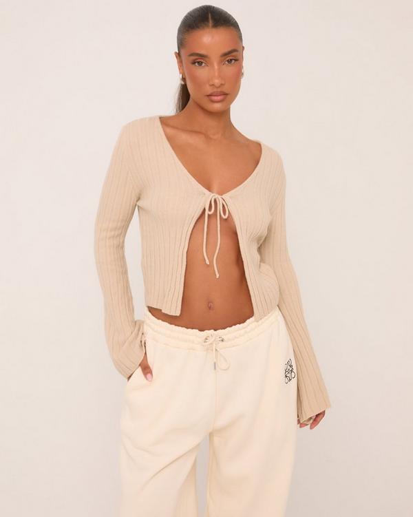 Long Sleeve Tie Front Cardigan Top In Stone Knit EGO Very well made.