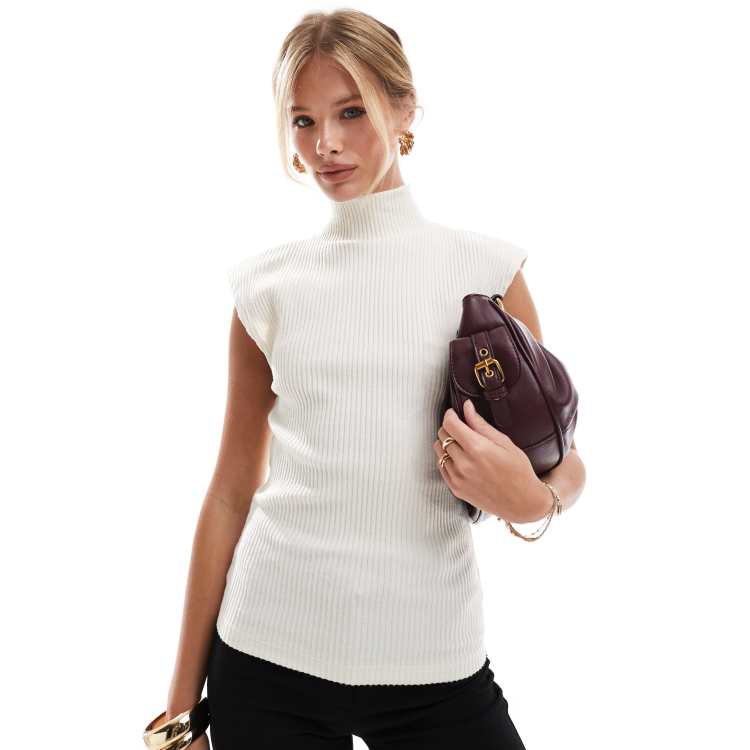 ASOS DESIGN supersoft ribbed shoulder pad sleeveless top in white ASOS Very well made.