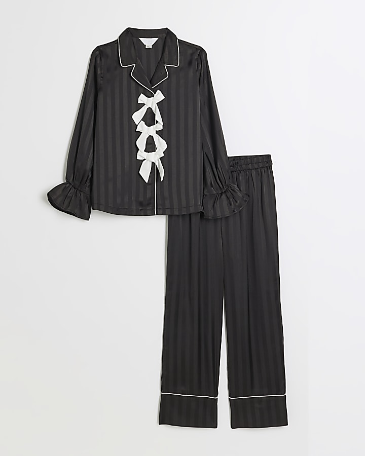 Girls Black Satin Bow Pyjamas Very well made.