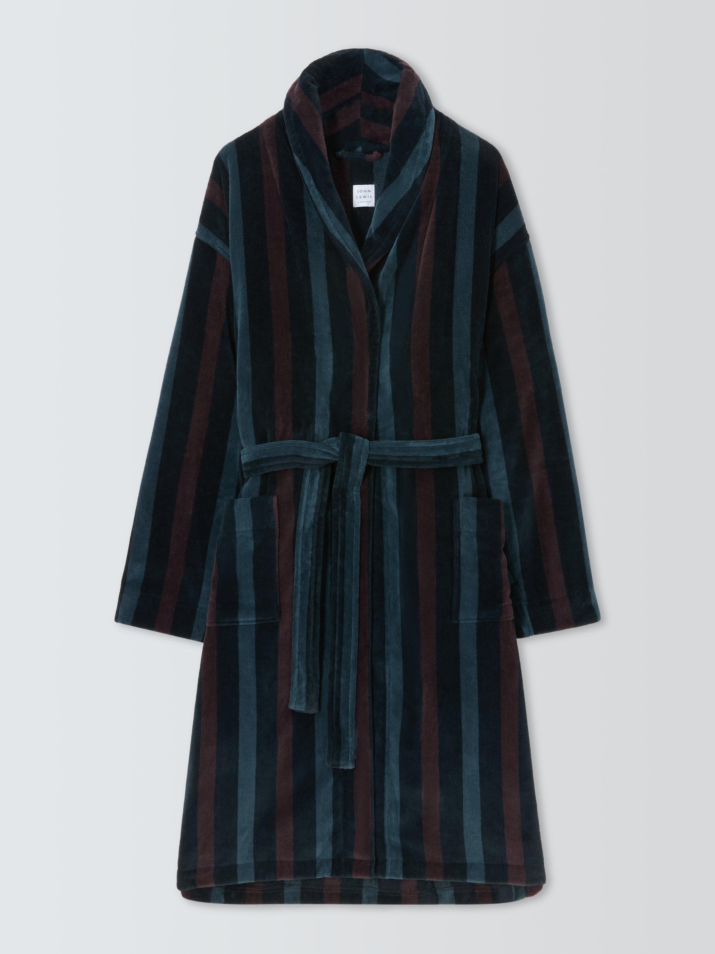 John Lewis Cotton Stripe Velour Robe Blue Navy Very well made.