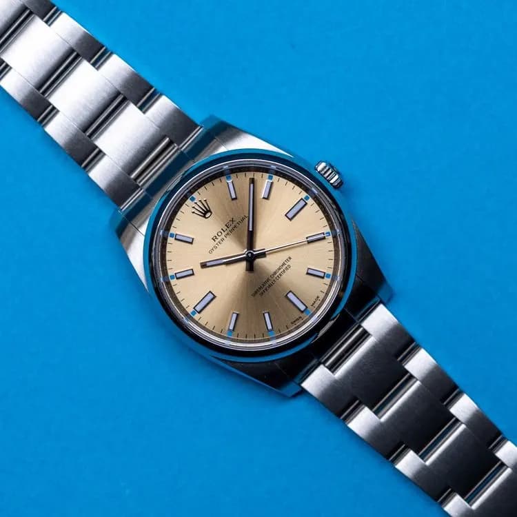 Rolex Oyster Perpetual 34 Champagne 114200 0022 Majestix Collection Very well made.