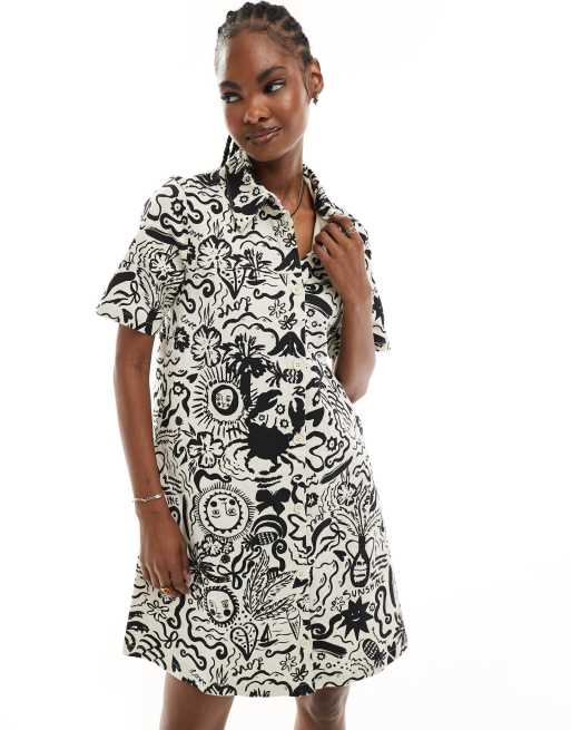 Monki Robe chemise courte et boutonnee a imprime estival avec manches courtes et col Noir et blanc ASOS Very well made.