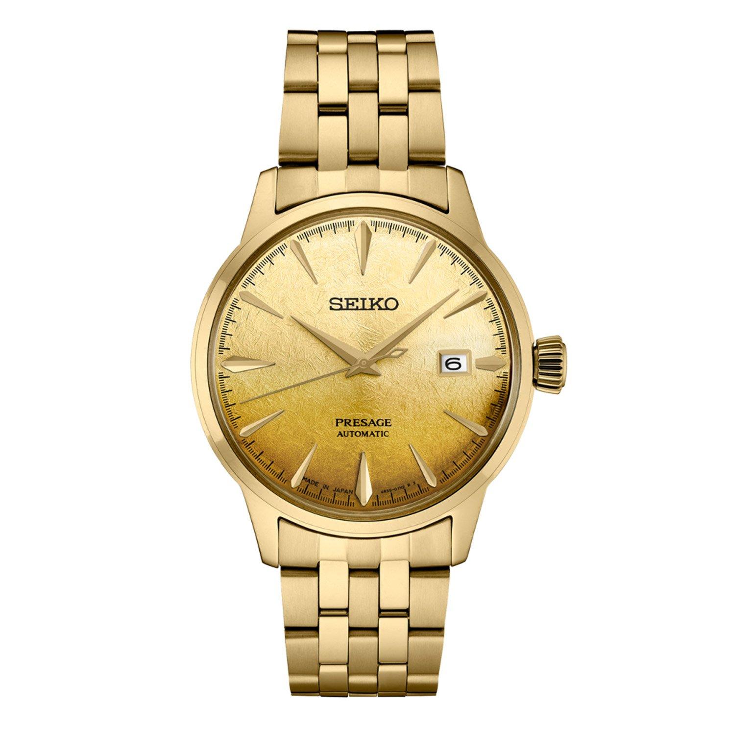 Seiko Presage Cocktail Time Beer Julep 40.5mm Yellow Gold Tone Automatic Men s Watch SRPK46J1 40.5 mm Gold Dial Beaverbrooks Very well made.