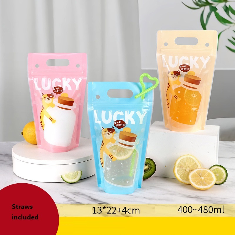 100Pcs Matt colorful Hand held Drink Bag Plastic ZipLock Juice Bag self stand drink Pouches Shopee Philippines Very well made.