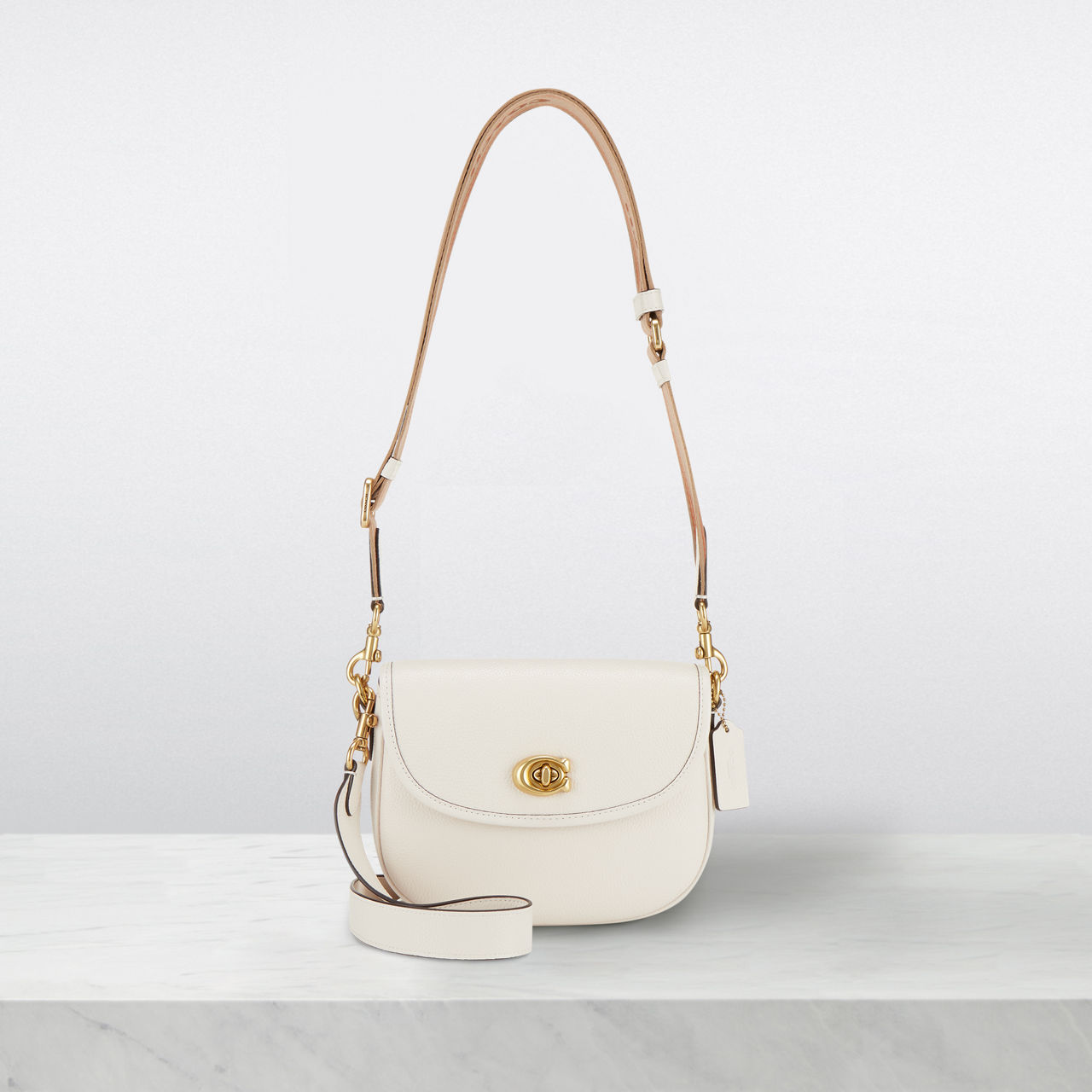 COACH Willow Leather Saddle Crossbody Bag Chalk Very well made.