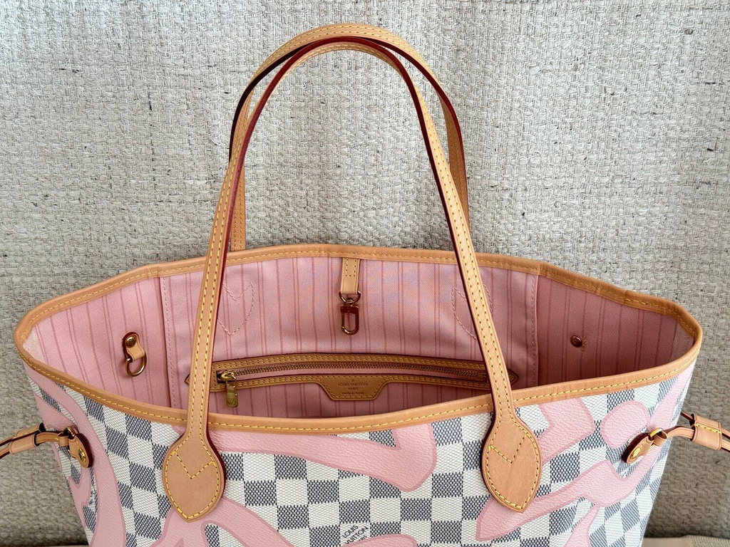 Outlet Louis Vuitton M22839 Neverfull MM Lotus Cotton White Beige On Sale Louis Vuitton Outlet Very well made.