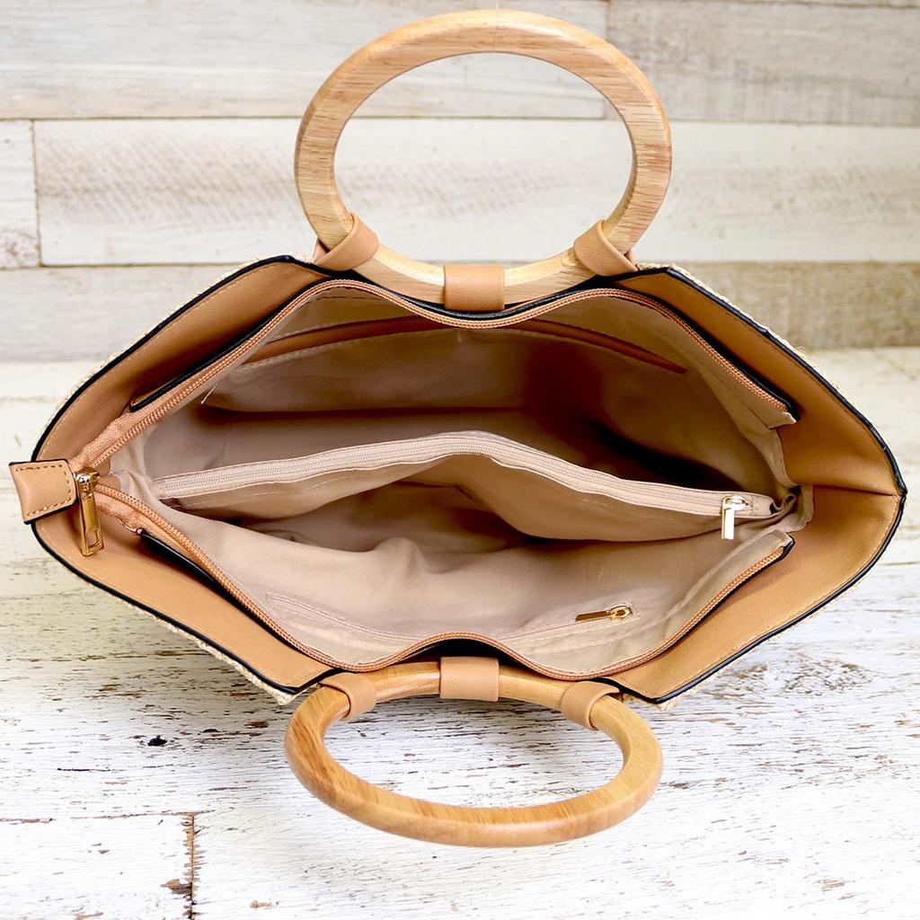 Straw Tote Bag with Wooden Handle Women Hobo Woven Handbag Summer Beach Travel Very well made.