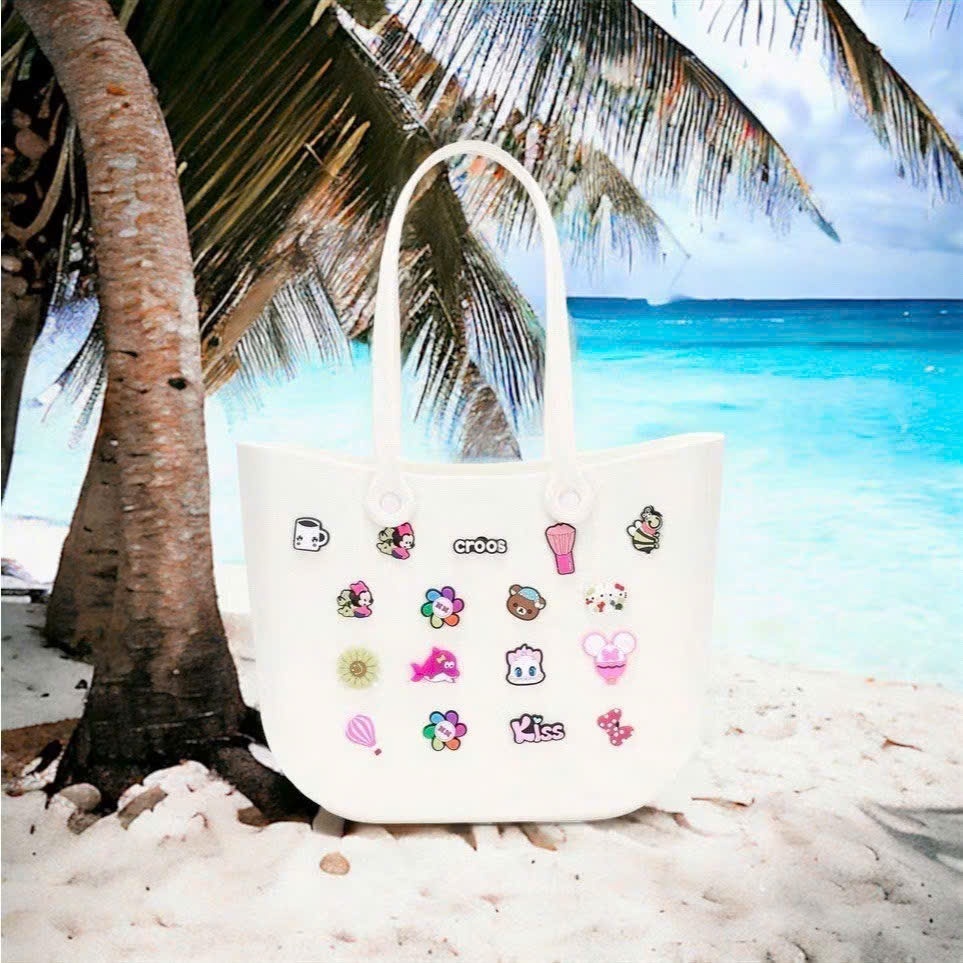 Super Beautiful 5 Color Crocs stick Bag With full Charm Random Gift Crocs Beach Travel Bag QC 2024 Shopee Malaysia Very well made.