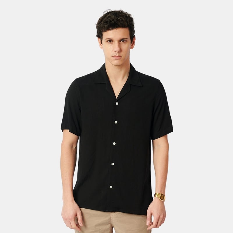 Camisa Lino Hombre Negro Very well made.