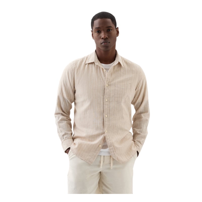 GAP Camisa Mezcla Lino Manga Larga Rayas Hombre Beige falabella Very well made.