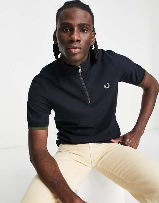 Polo azul marino con cuello alzado y cremallera de Fred Perry Very well made.