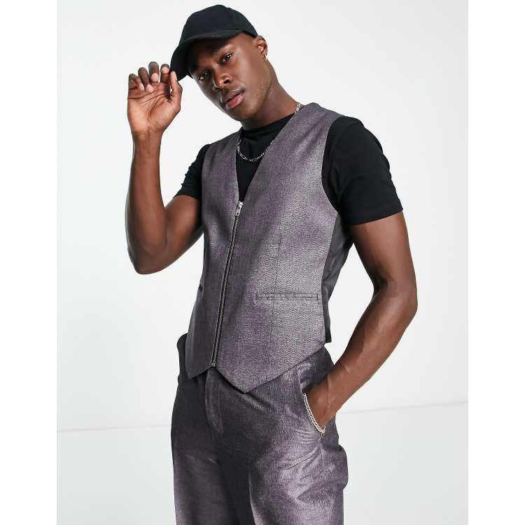Chaleco de vestir plateado con cremallera y acabado brillante texturizado de ClassicfuncenterShops DESIGN parte de un conjunto ClassicfuncenterShops Very well made.