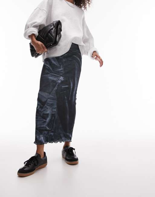 Topshop Jupe mi longue imprimee en tulle Bleu marine Very well made.