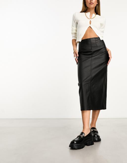 Stradivarius Jupe mi longue en jean enduit a coutures apparentes Noir ASOS Very well made.