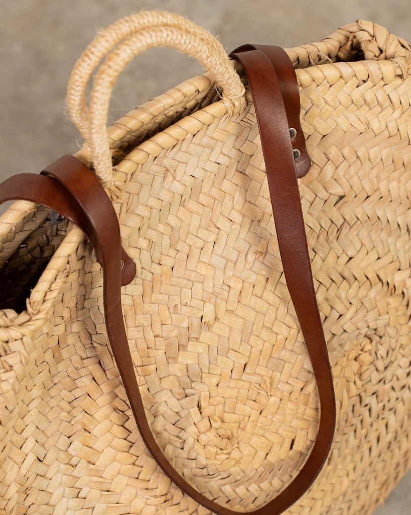 Capazo oval de palma con asas bandolera marron y de pita Very well made.